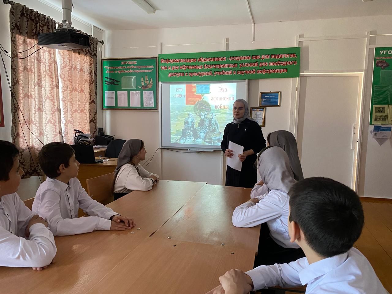Во взаимодействии с отделом в Ножай-Юртовском районе УФСБ России по Чеченской Республике в МБОУ «СОШ №1 с.Гиляны им.Исаева А.У.» классными руководителями проведены мероприятия на тему «Эхо Афганской войны».